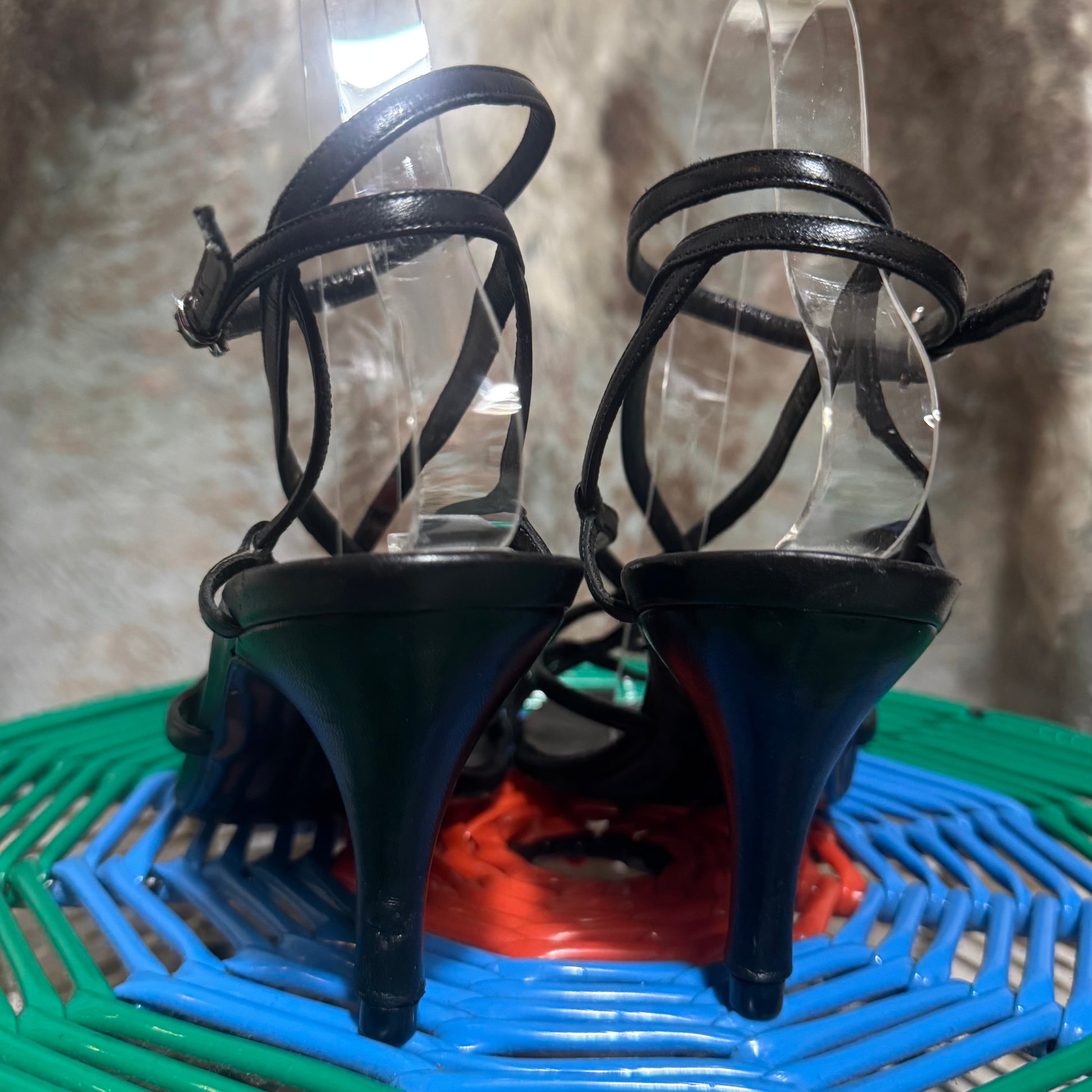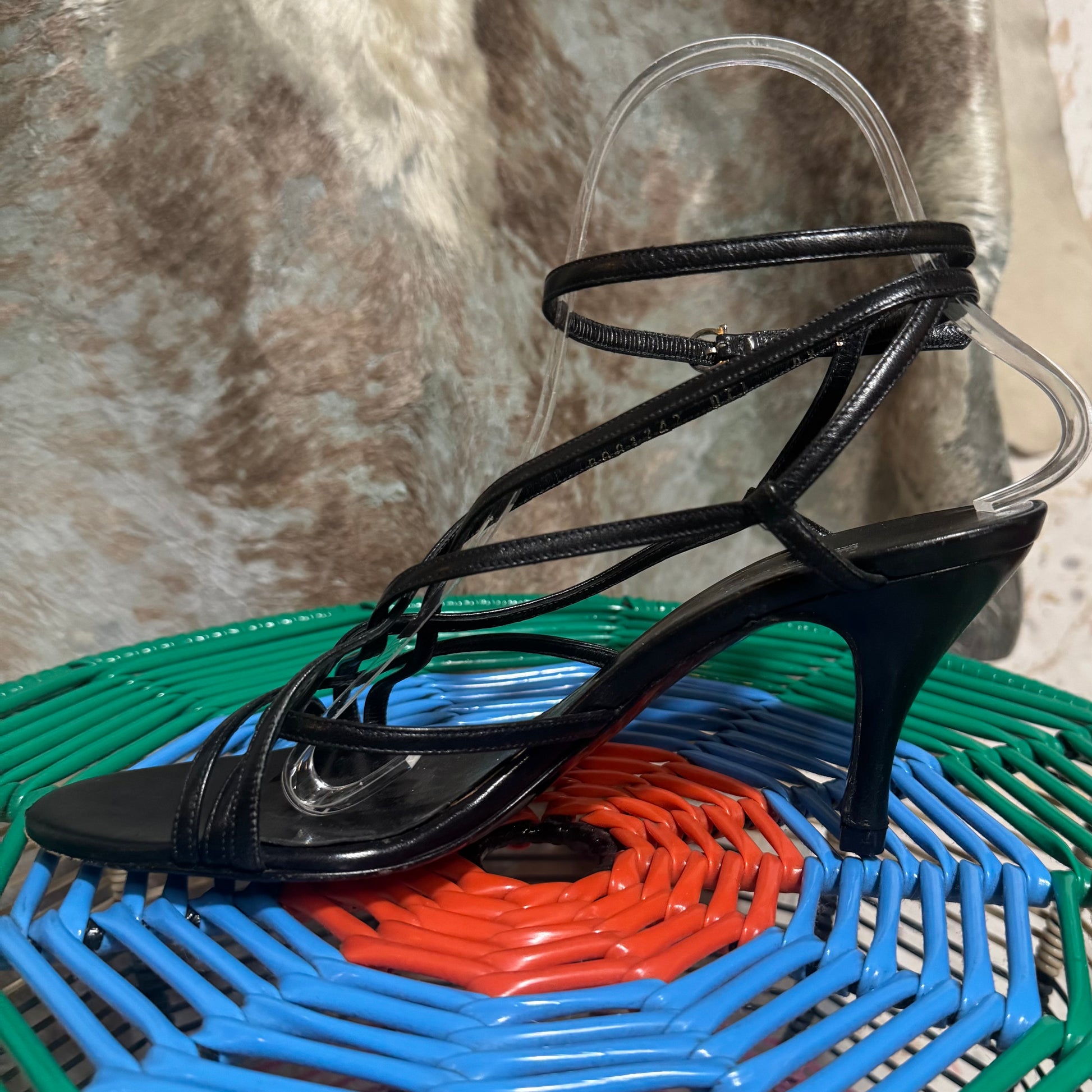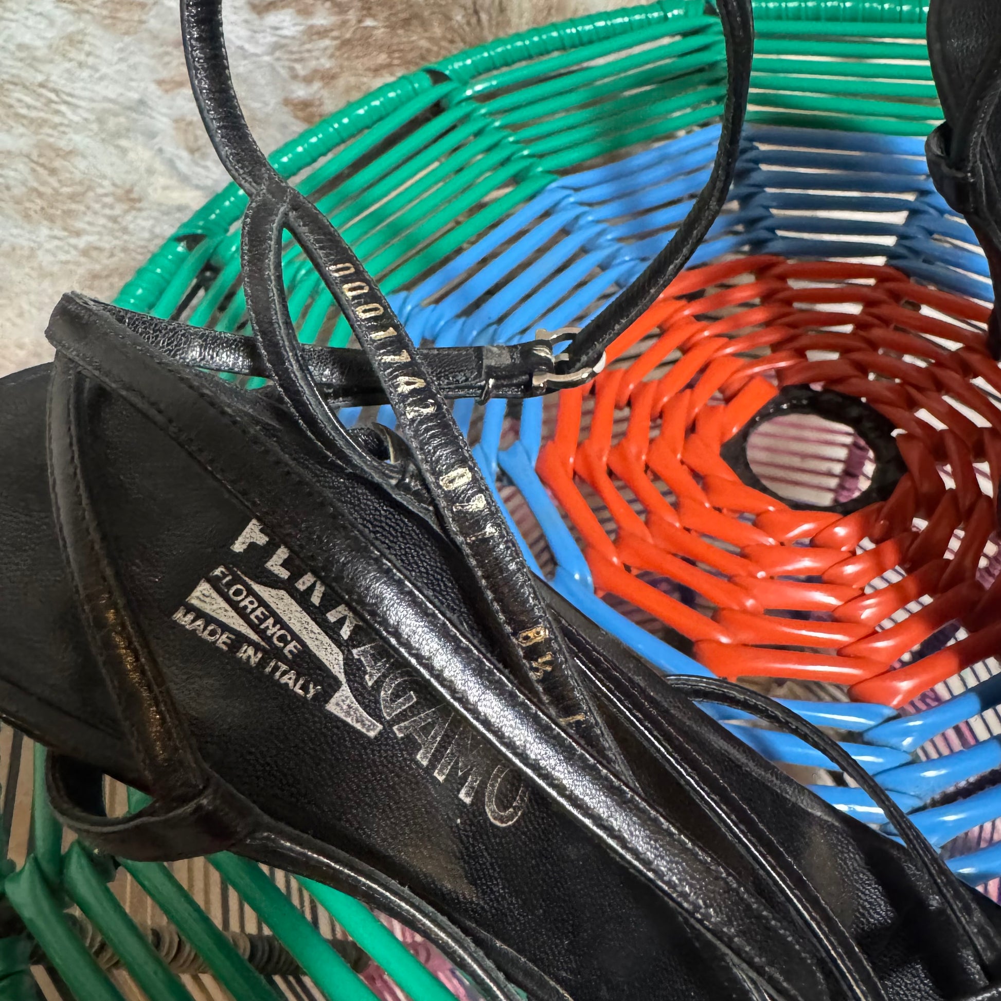VINTAGE 90s / 2000s SALVATORE FERRAGAMO BLACK STRAP STILETTO SLINGBACK HEEL SANDALS