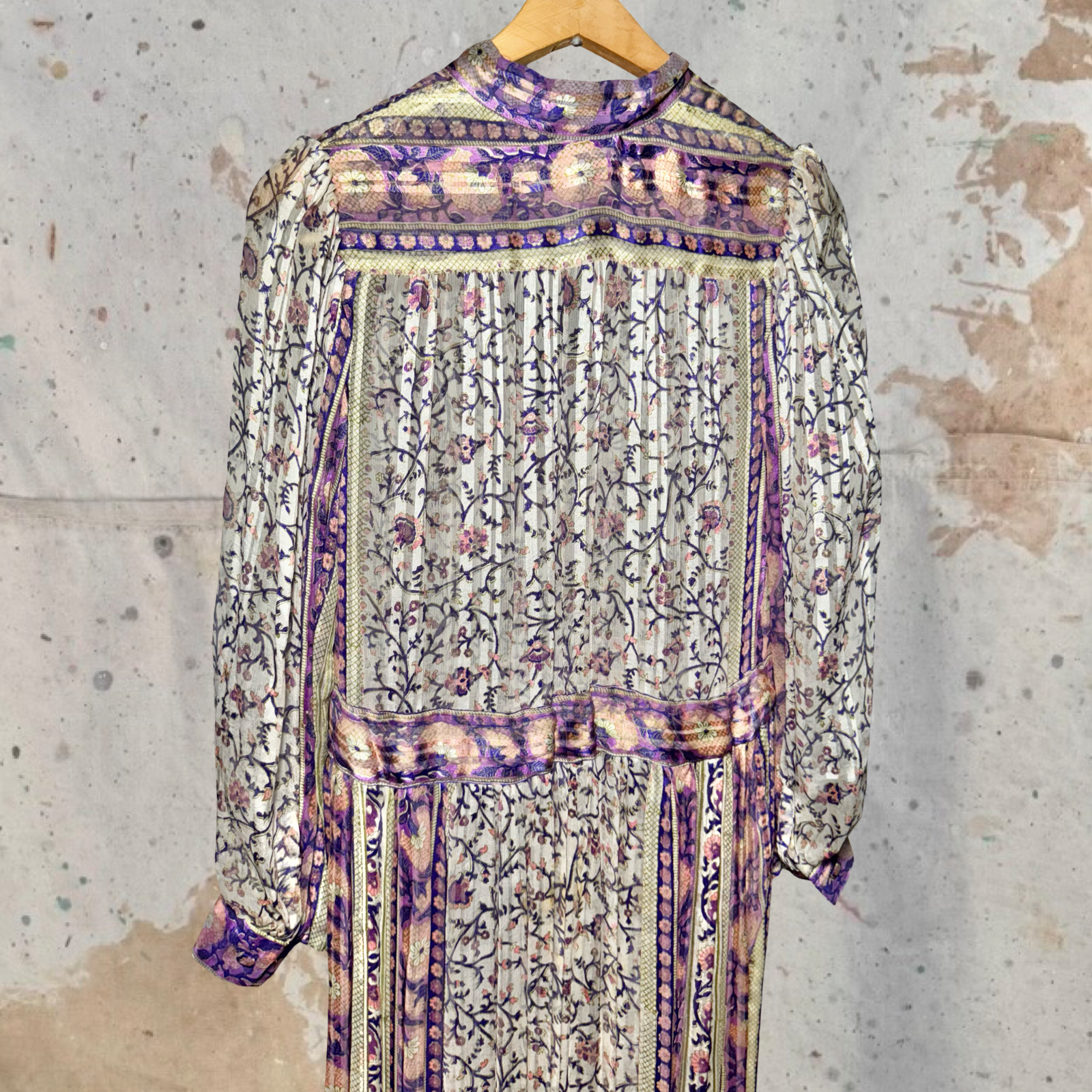 1970s RARE RAKSHA OF HINDIP LONDON SILK PESANT INDIAN PRINTED PURPLE DRESS
