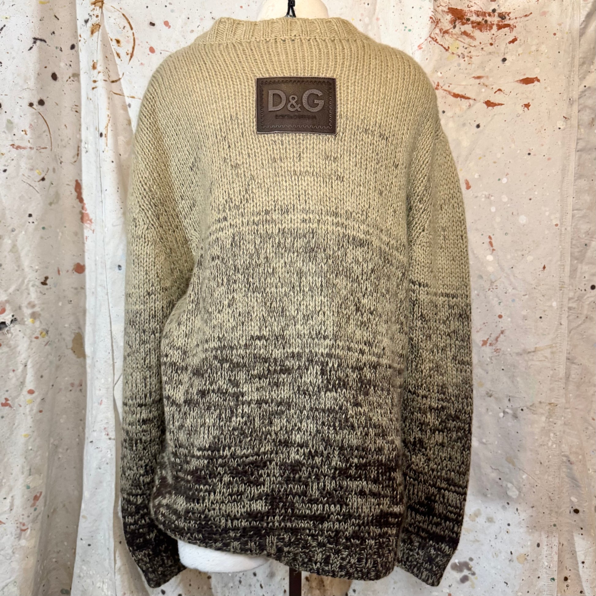 D&G DOLCE AND GABBANA BROWN OMBRE WOOL LOGO PATCH MENS KNIT SWEATER
