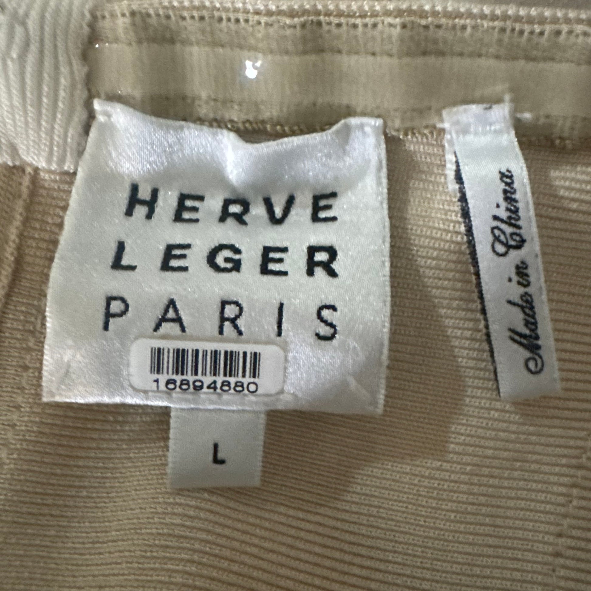 HERVE LEGER DRAPED HALTER NECK FRINGE DRESS
